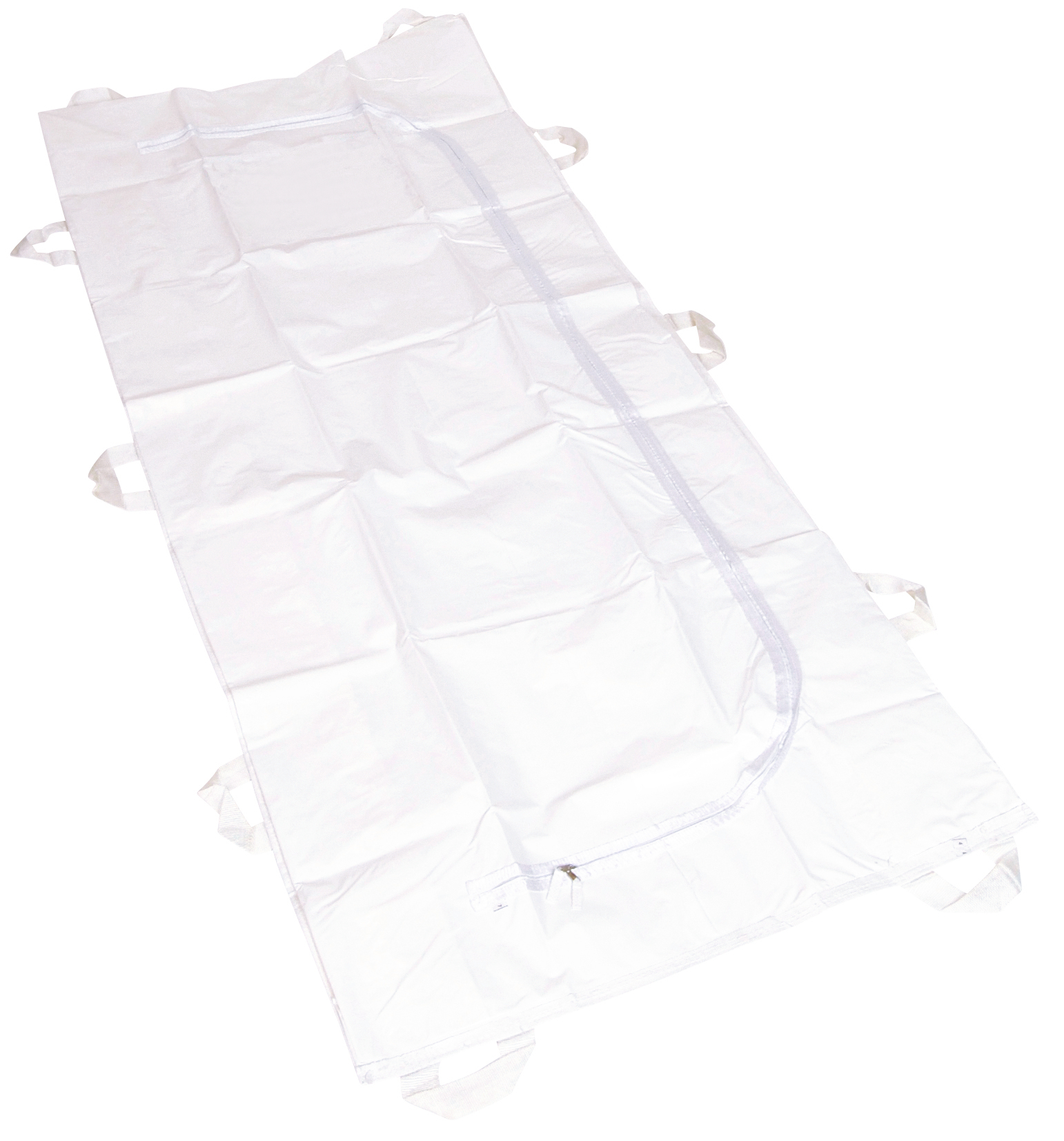 Produktinformationen "Verstorbenen Transporthülle weiß, 10 Trageschlaufen, ovaler Reißverschluss, feste Ausführung, 260 kg"