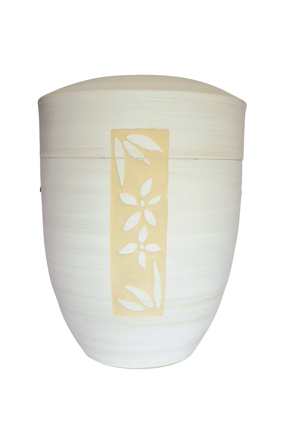 Urne 17 Göteborg, Keramik, weiß mit floralem Relief