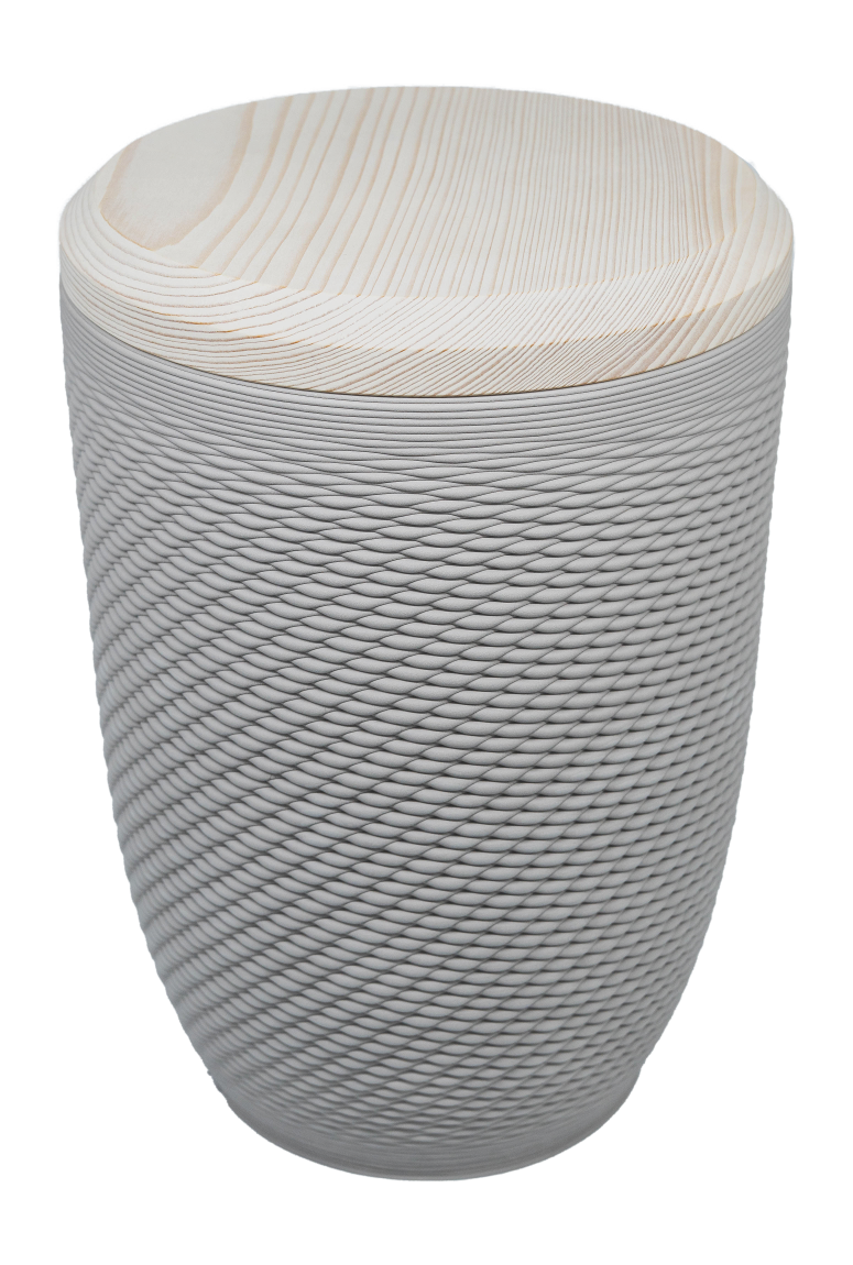 Eigenschaften "Urne Nr. 77219 Keramik, grau, Struktur: Korbgeflecht 3D-Druck, Deckel Tanne"