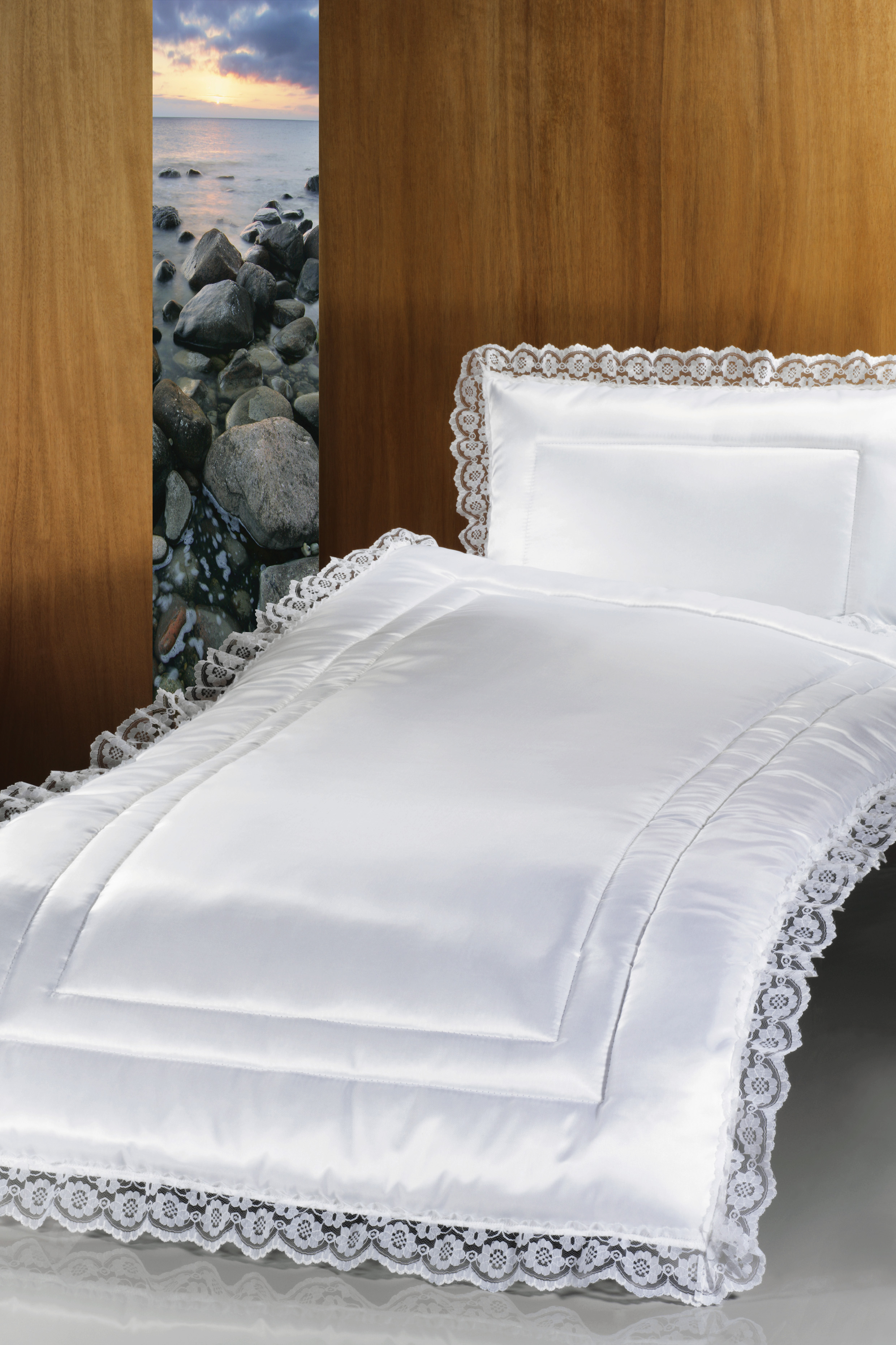 Deckengarnitur 0101 tv Serge, mit Raschelspitze (Blumenmotiv) als Abschluss.