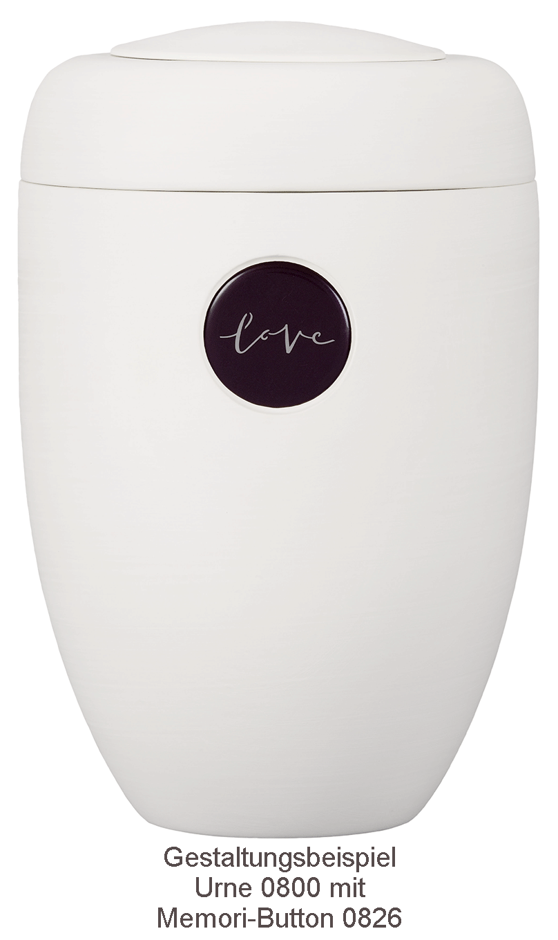 Die Farben dieser magnetischen Memori-Buttons sind perfekt auf die neue Farbkollektion der Memori-Urnen-Modelle (crèmeweiß, schwarz, aubergine und petrol) abgestimmt. Die Buttons passen genau in die Aussparung der Urnen. Erhältlich in den Grundtönen aubergine, petrol und silber mit Herz, Kreuz oder "Love"-Schriftzug.