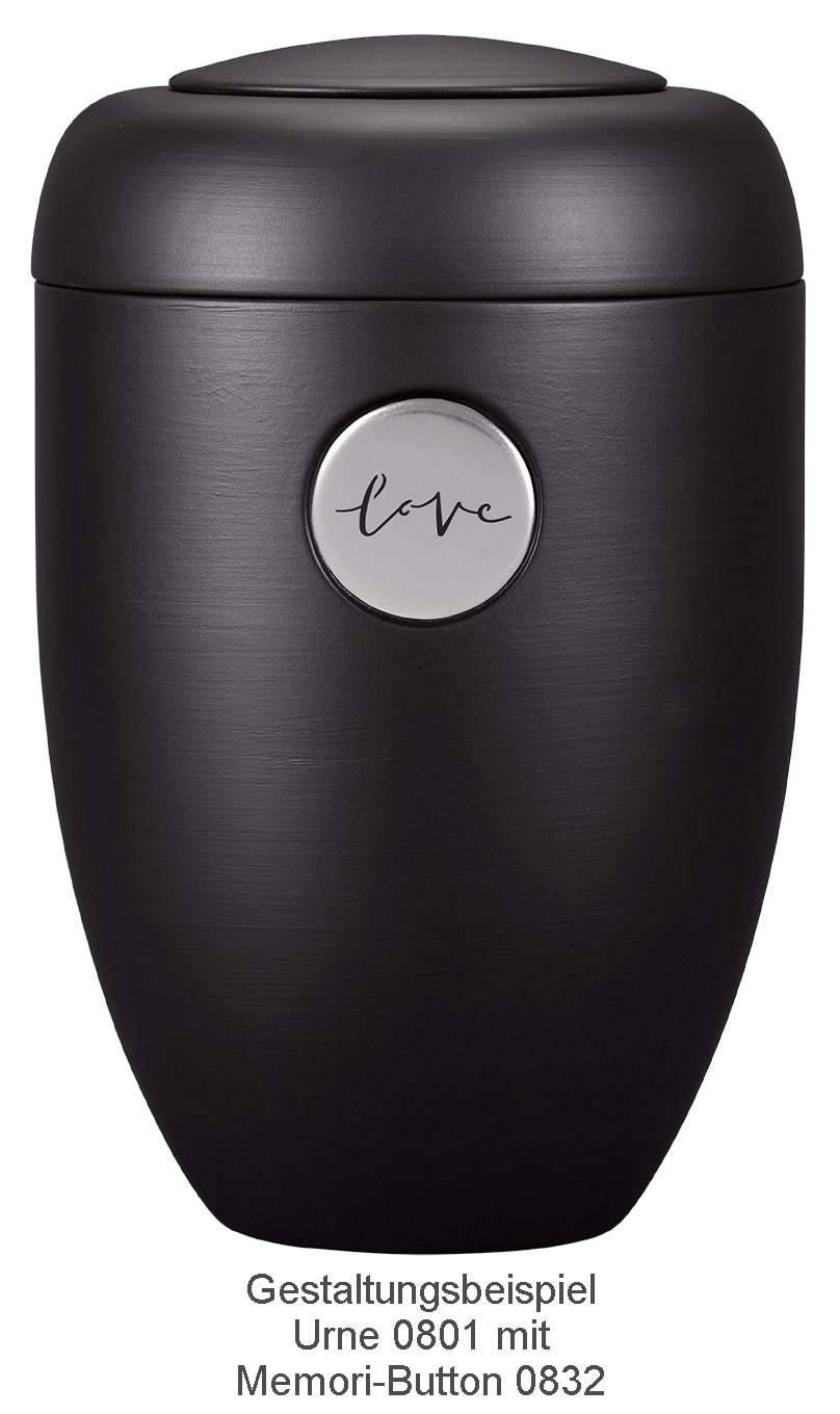 Die Farben dieser magnetischen Memori-Buttons sind perfekt auf die neue Farbkollektion der Memori-Urnen-Modelle (crèmeweiß, schwarz, aubergine und petrol) abgestimmt. Die Buttons passen genau in die Aussparung der Urnen. Erhältlich in den Grundtönen aubergine, petrol und silber mit Herz, Kreuz oder "Love"-Schriftzug.